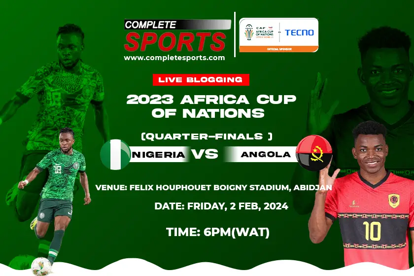 Completesports.com’s Live Blogging of the AFCON 2023 game between the Super Eagles of Nigeria and the Palancas Negras [Black Sable Antelope] of Angola at Felix Houphouet-Boigny Stadium, Abidjan.