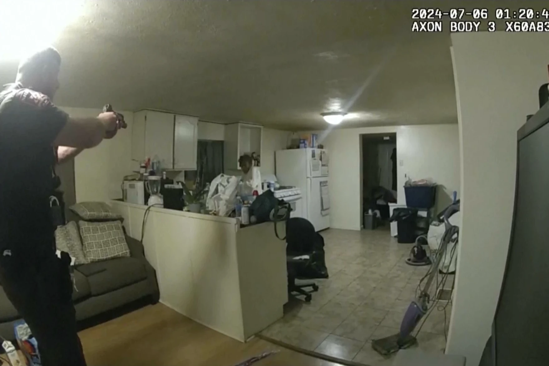 Apologizing, Massey crouches behind a counter as officers scream “drop the fucking pot.” They then round the corner of the counter and open fire.