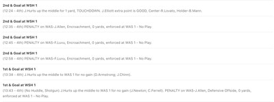 Facing 1st and goal, Kellen Moore called for the Brotherly Shove. While Washington stopped the play for no gain, defensive lineman Jonathan Allen was flagged for encroachment, and the football was moved inches closer to the end zone.