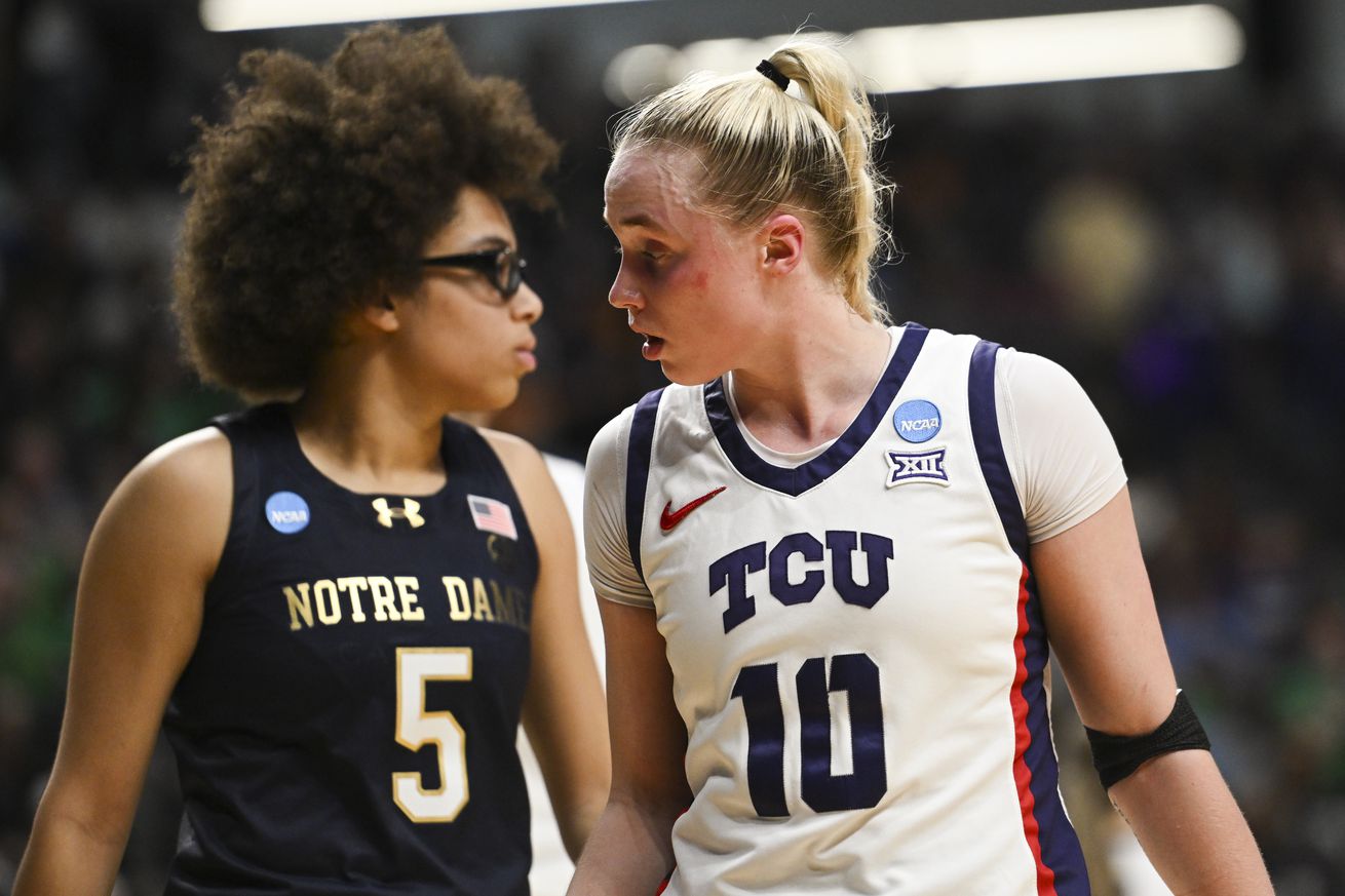 After Notre Dame briefly retook the lead, Van Lith kept pouring gas into TCU’s tank. Early in the Horned Frogs’ game-sealing fourth quarter run, Van Lith took a dribble handoff from Donovyn Hunter, curled to the top of the key and fired from deep range as Prince’s screen effectively held up Hidalgo. After the ball swished through the net, Van Lith’s dad slapped hands and chest-bumped her boyfriend, former Gonzaga star Jalen Suggs, in the stands.