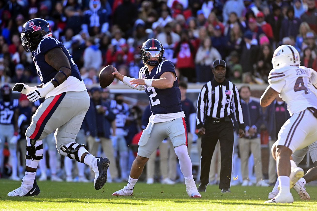 Just about anything would have been better than this throw into triple coverage, in this situation. Mississippi’s ensuing loss knocked them out of playoff contention.