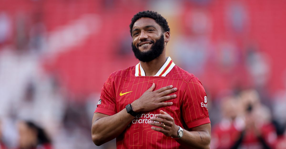Joe Gomez has been sidelined since picking up a hamstring injury against Plymouth Argyle in the FA Cup in early February, but was pictured in training on Friday ahead of Liverpool’s first home match since winning the title.