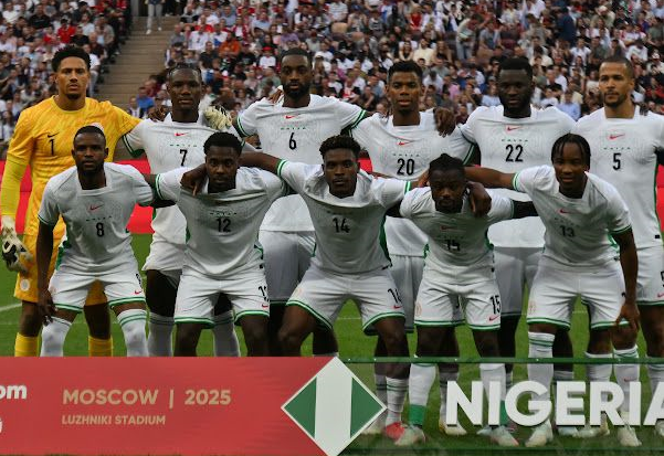 Super Eagles players pose for photos before the friendly against Russia. Photo | NGSuper_Eagles