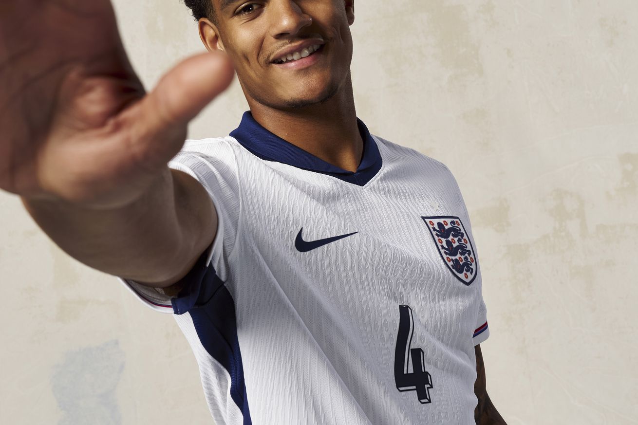 Jarrell Quansah pictured smiling with his arm raised toward the camera for England U21’s promotional images. | Photo by The FA/The FA via Getty Images
